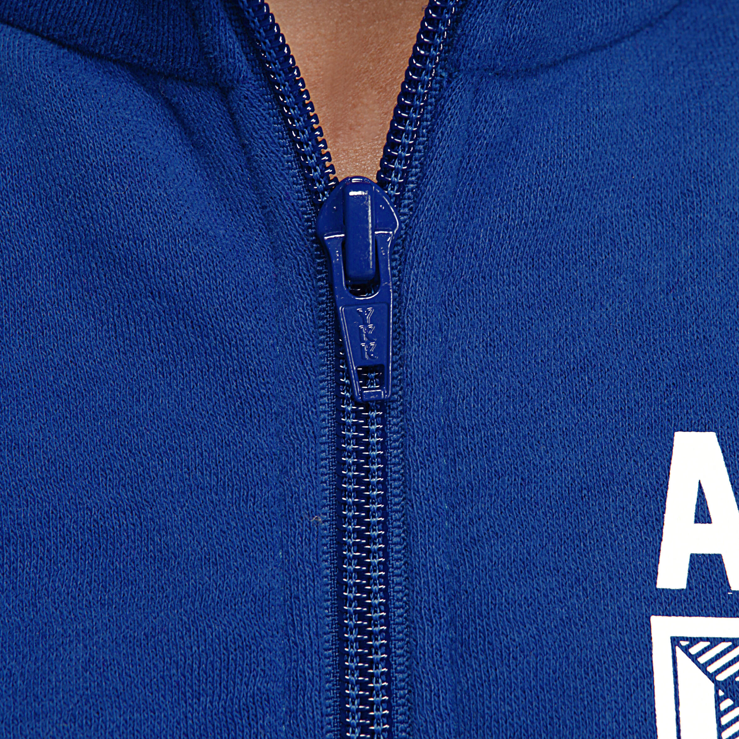 The zip-up jacket has a modern print on the left of the chest.