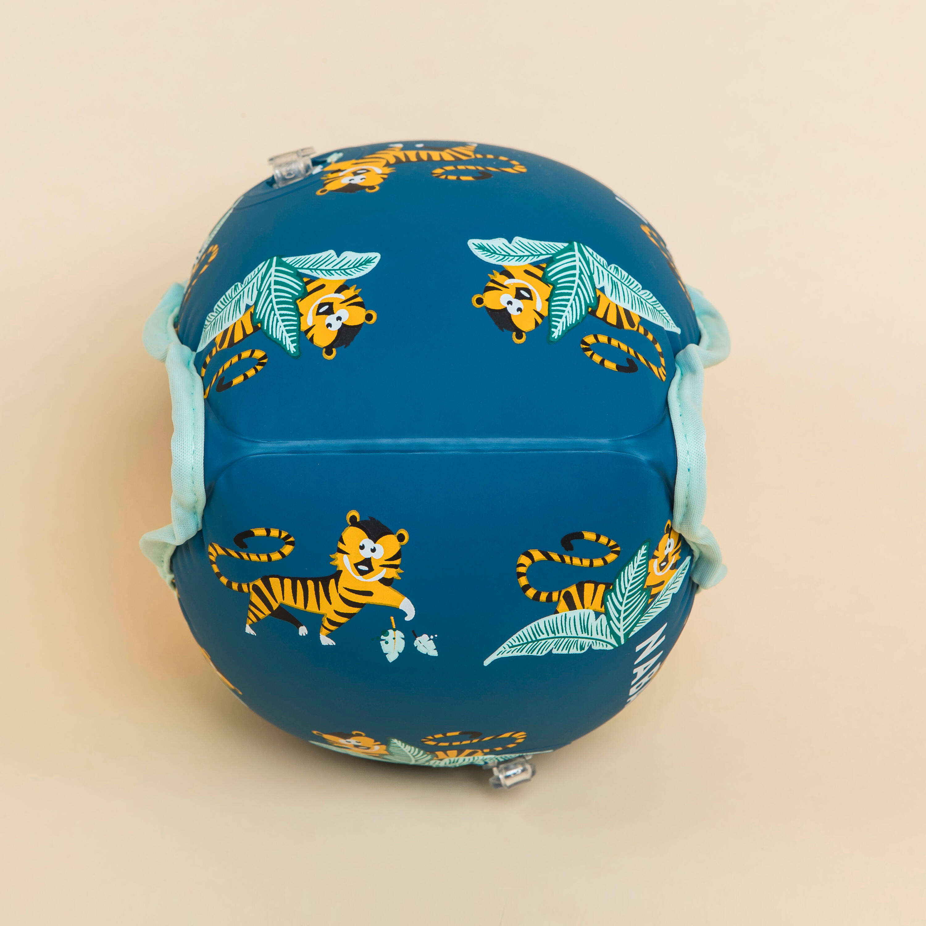 Very good buoyancy at arm level allows the kid to keep their head above the surface and gradually gain confidence while learning about water. The kid moves in the water more in the vertical position by moving their legs.