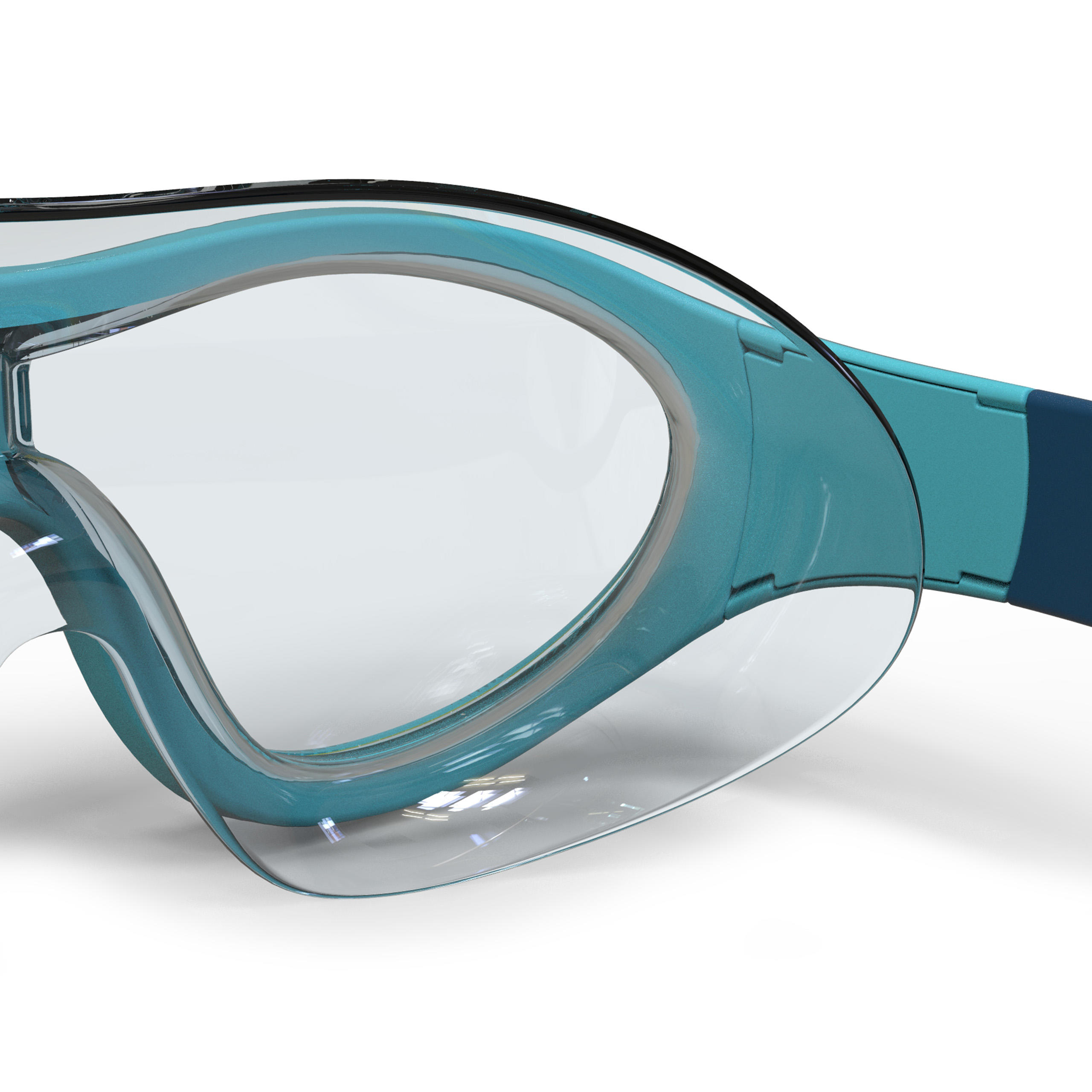 The swimming pool mask’s watertightness depends on the silicone seals correctly fitting the shape of your face.