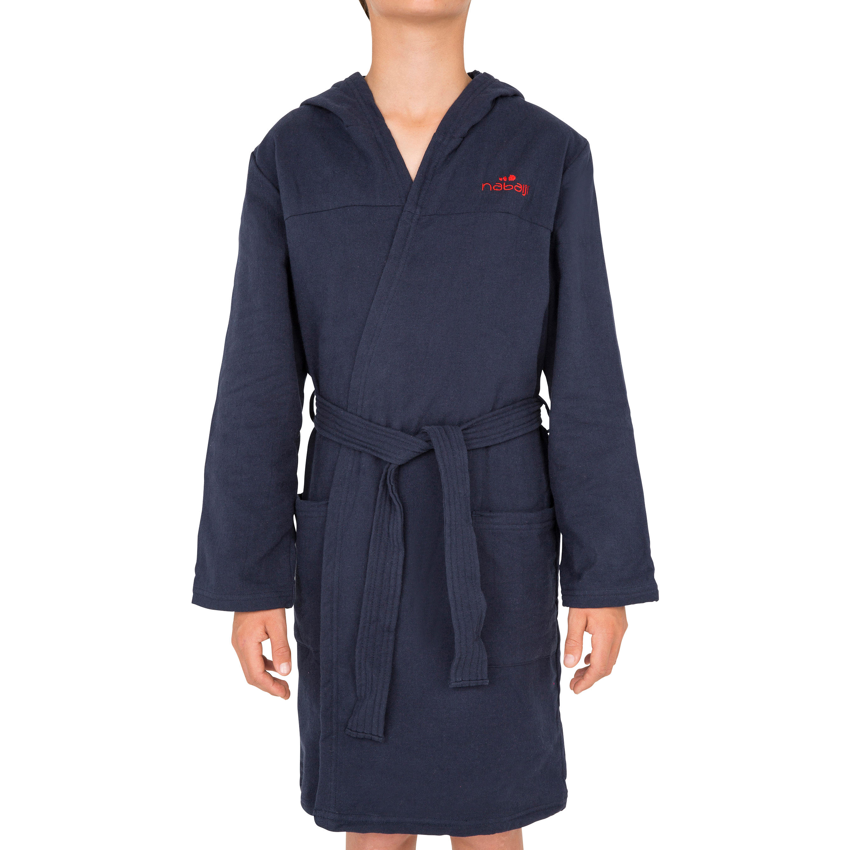 Kids' Lightweight Cotton Pool Bathrobe with Hood, Pocket & Belt - Navy Blue