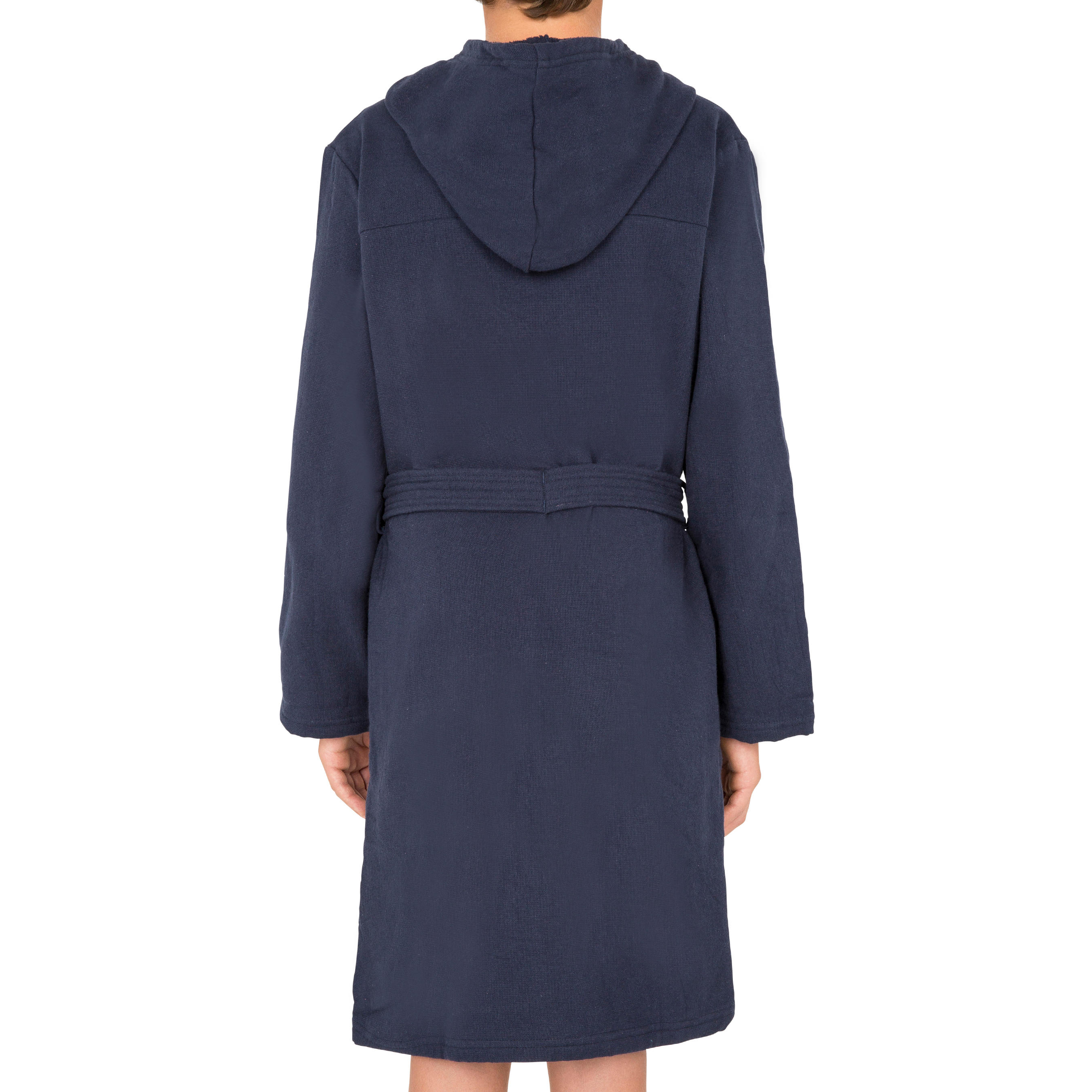 This plush micro-loop cotton bathrobe is very comfortable to wear. The lightweight cotton makes this bathrobe more compact and therefore easier to fit into your swimming bag.