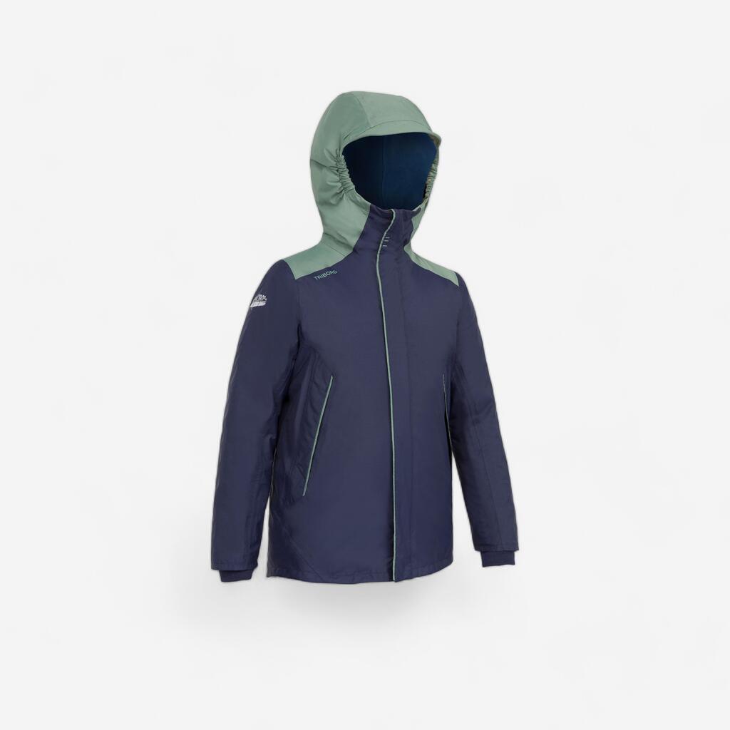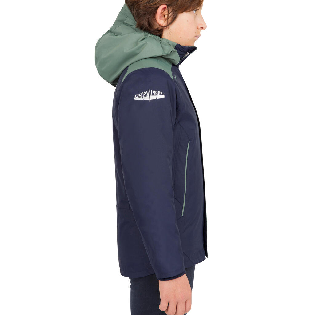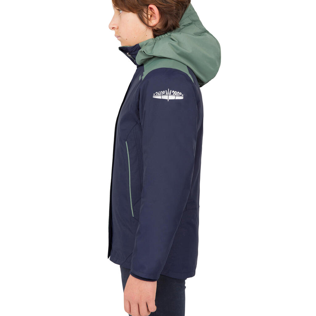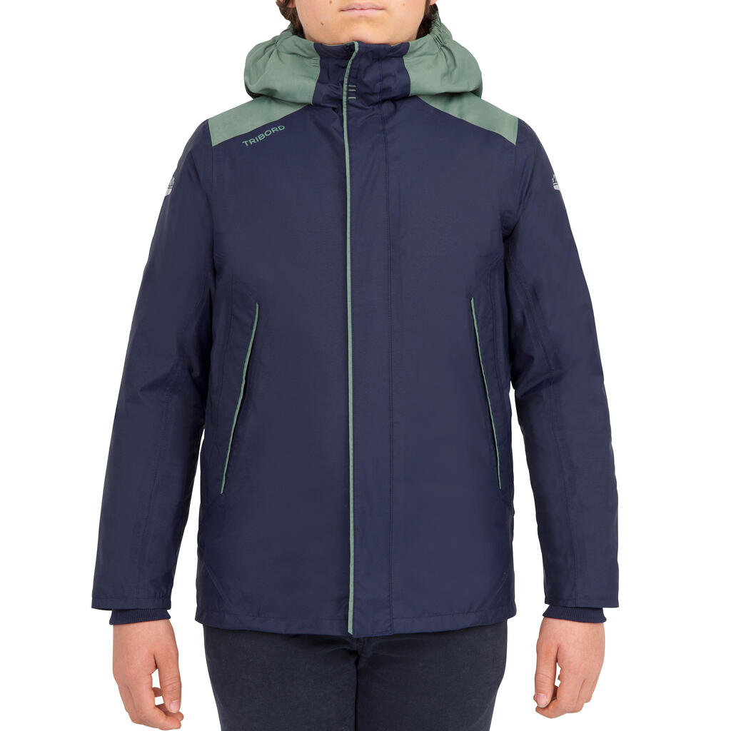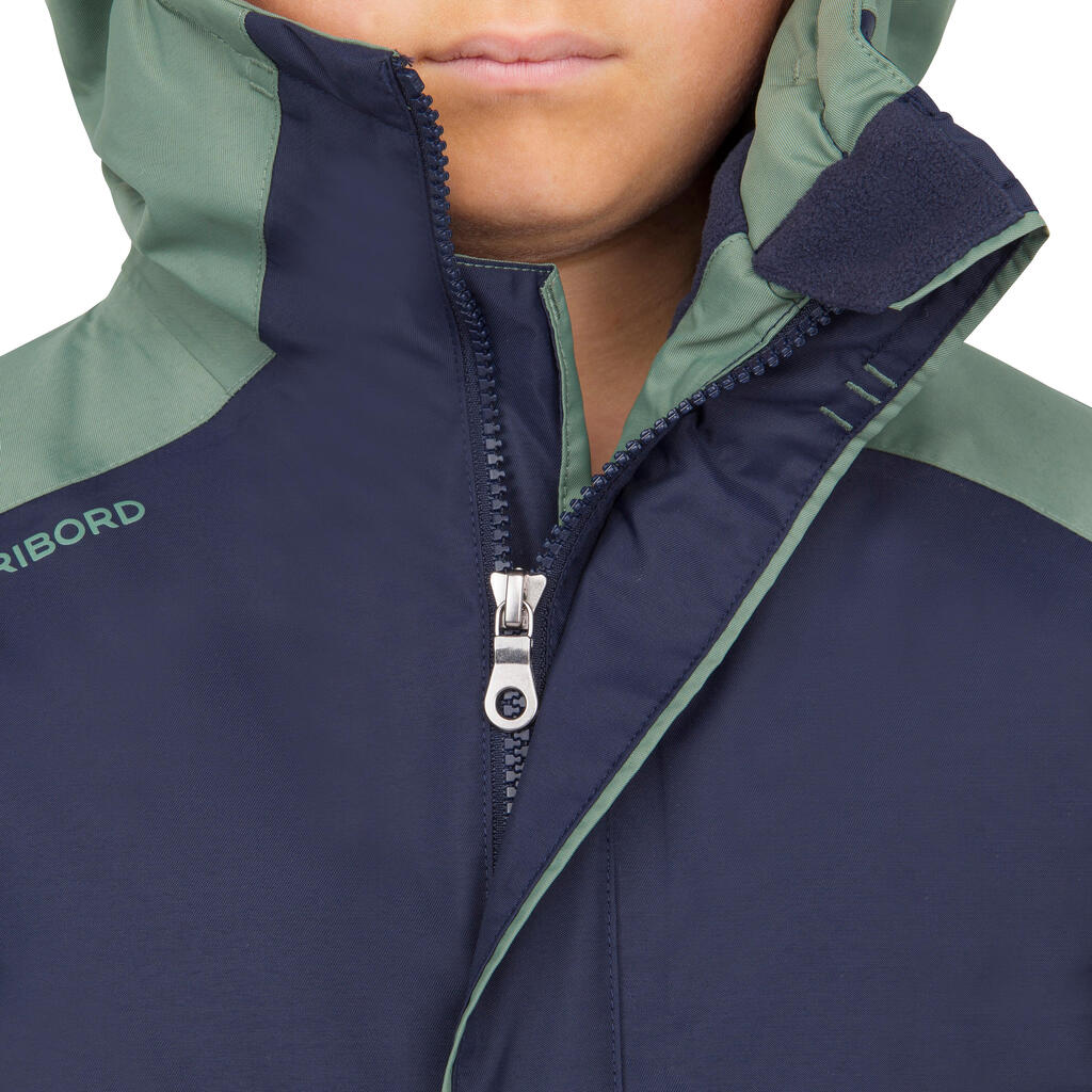 Kids sailing jacket warm and waterproof sailing 100 blue khaki