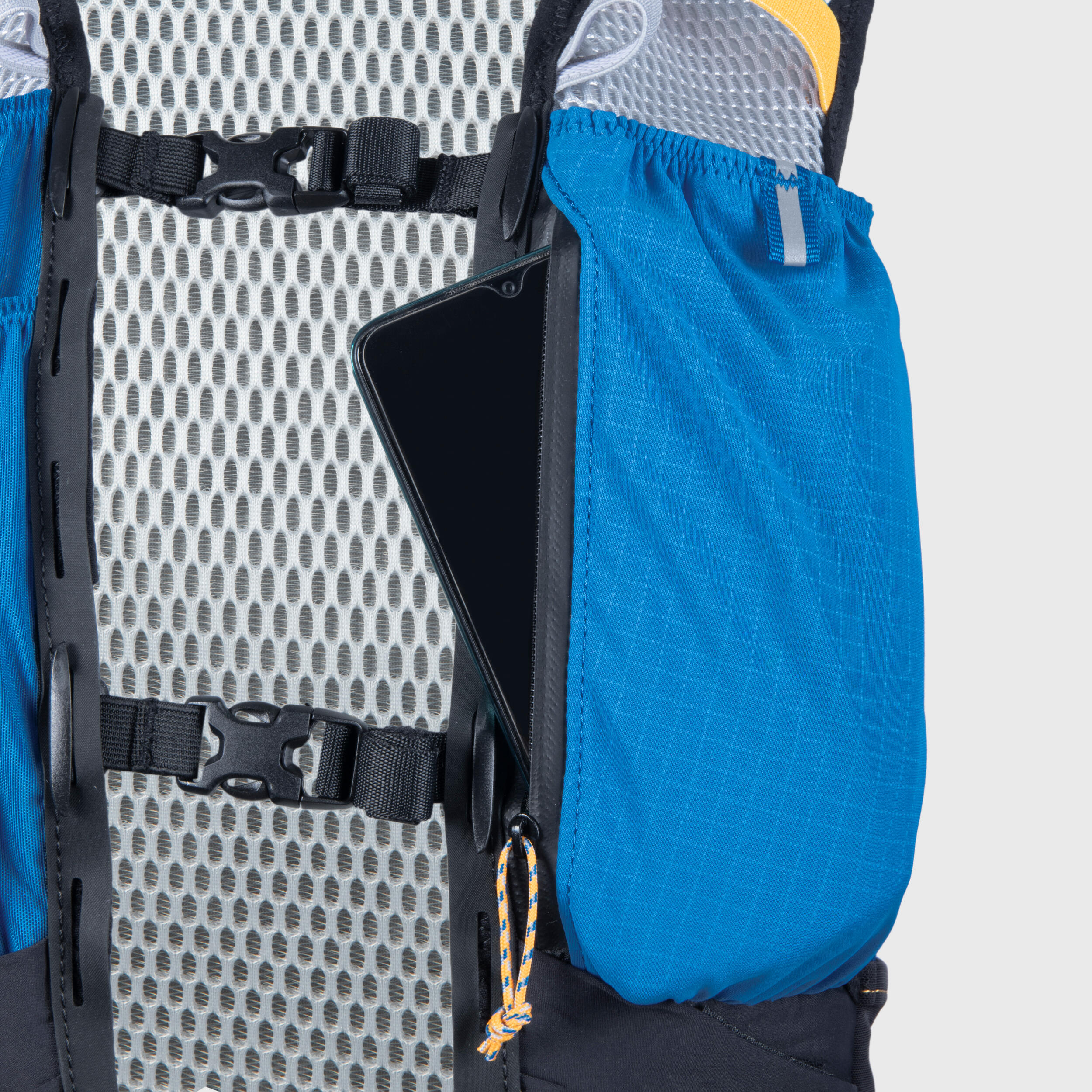 15 litres and 15 pockets, to keep everything within easy reach while trail running.
