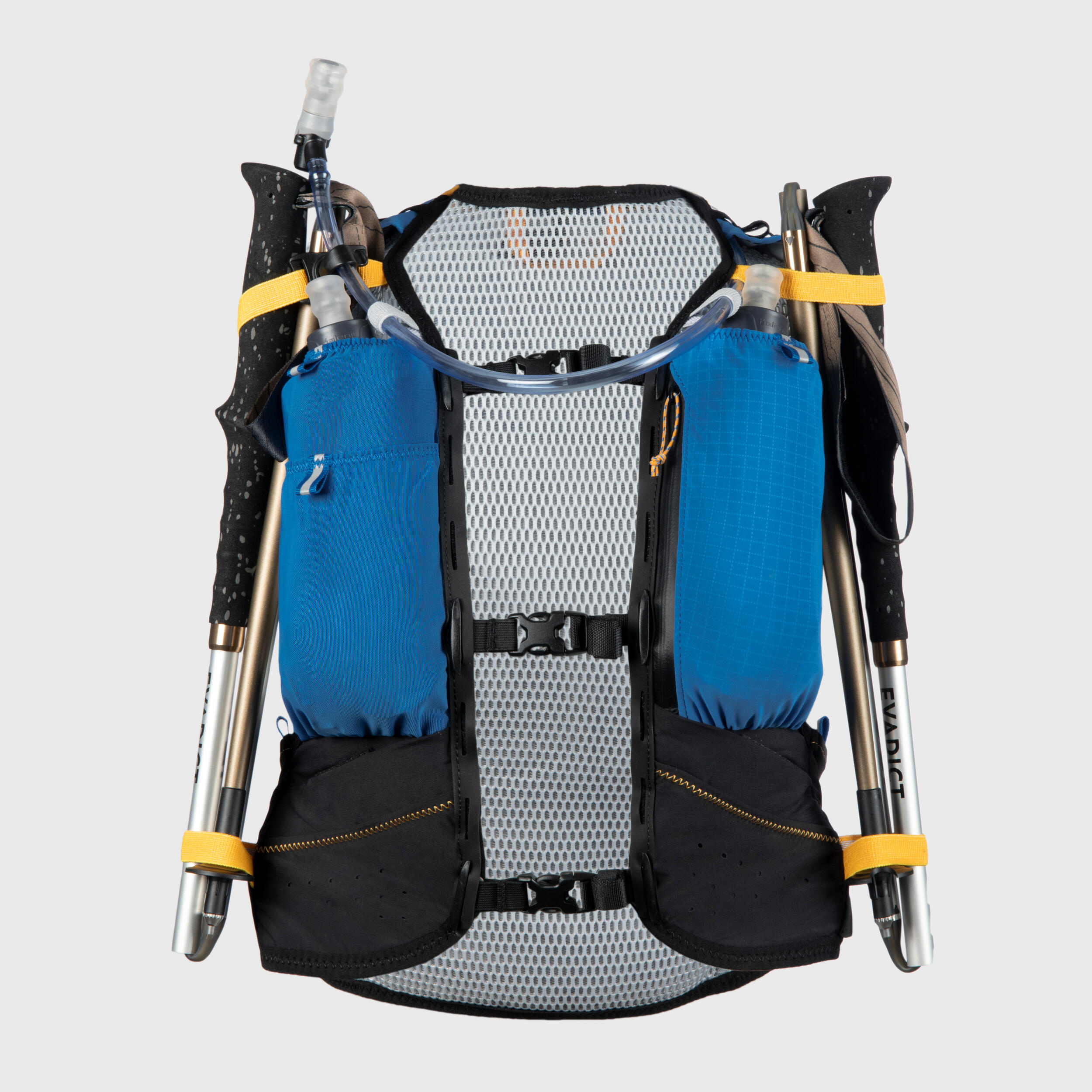 Evadict quiver fastening system built into the black (ref 8801291) and blue (ref 8618629)15 L ultra-trail running bag