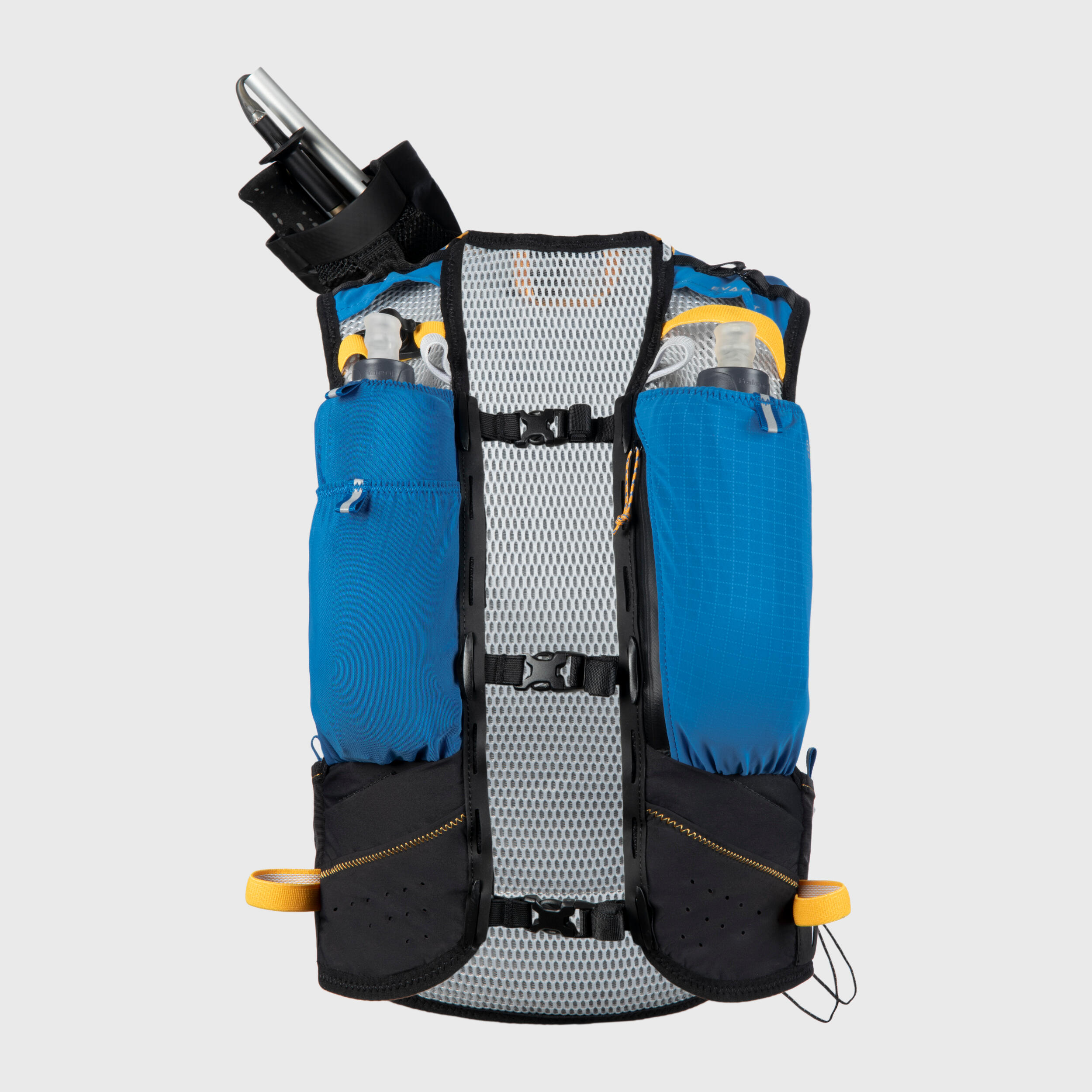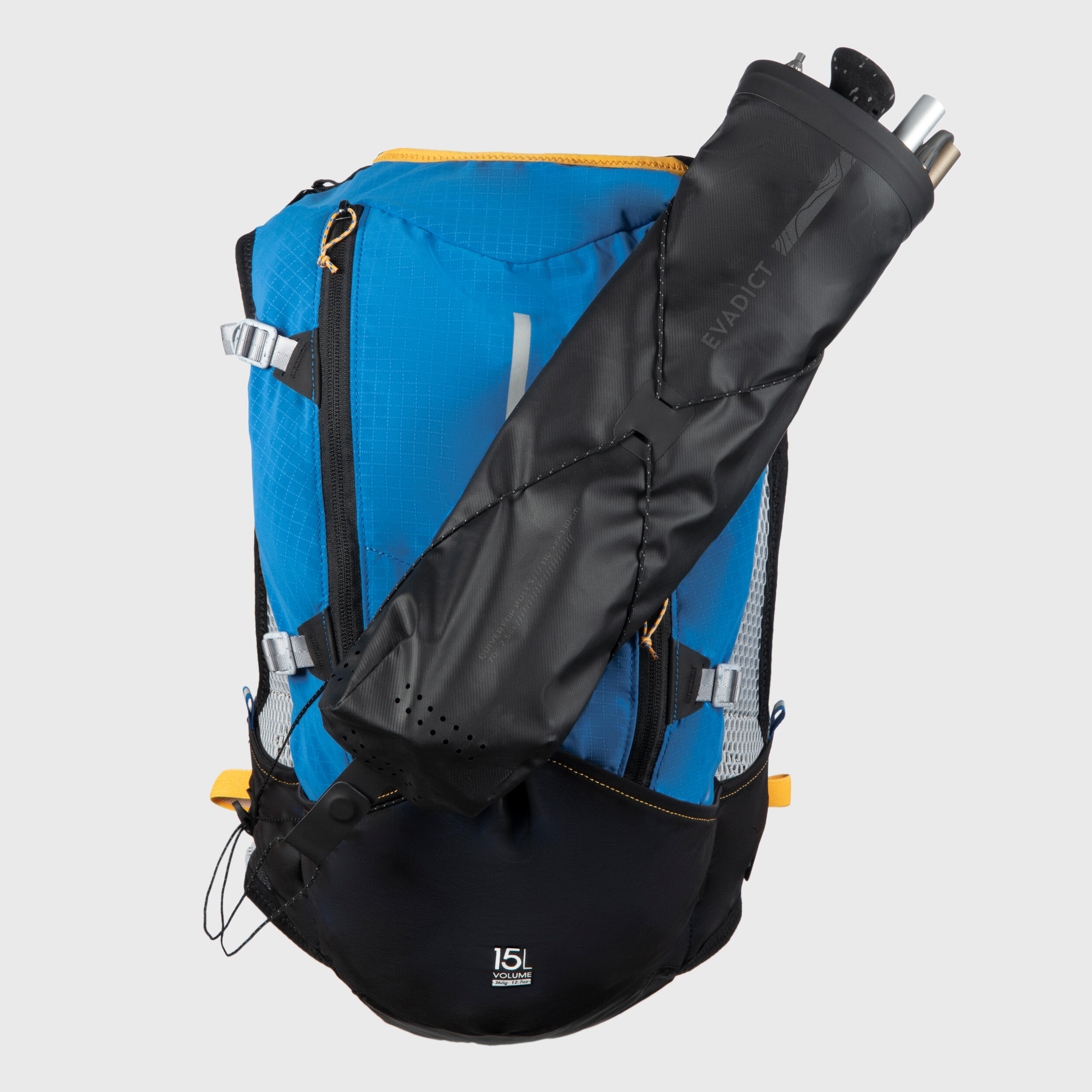 You can even take your poles with you in the quiver that is fastened to the blue 15 L ultra-trail running bag! (quiver sold separately)