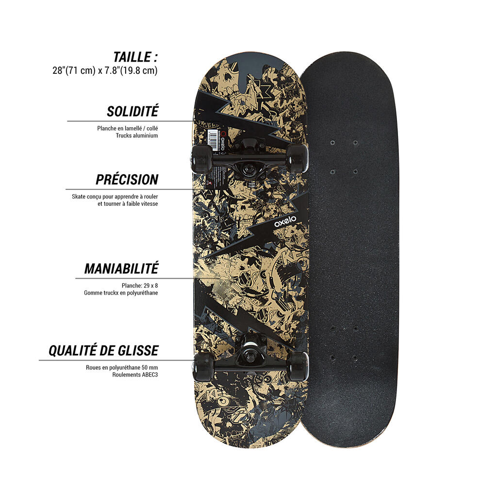 Our teams have developed this skateboard for beginners, ages 5 to 7, who want to learn to skateboard with a more versatile board.