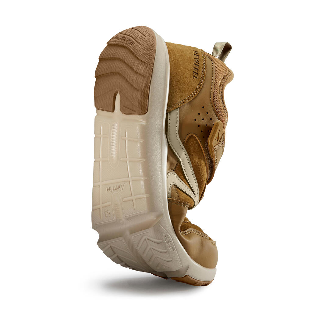 It is easy to put on thanks to its elastic laces and rip-tab, and easy to match with your outfit.Its comfort, leather and urban look mean you can walk all day long.