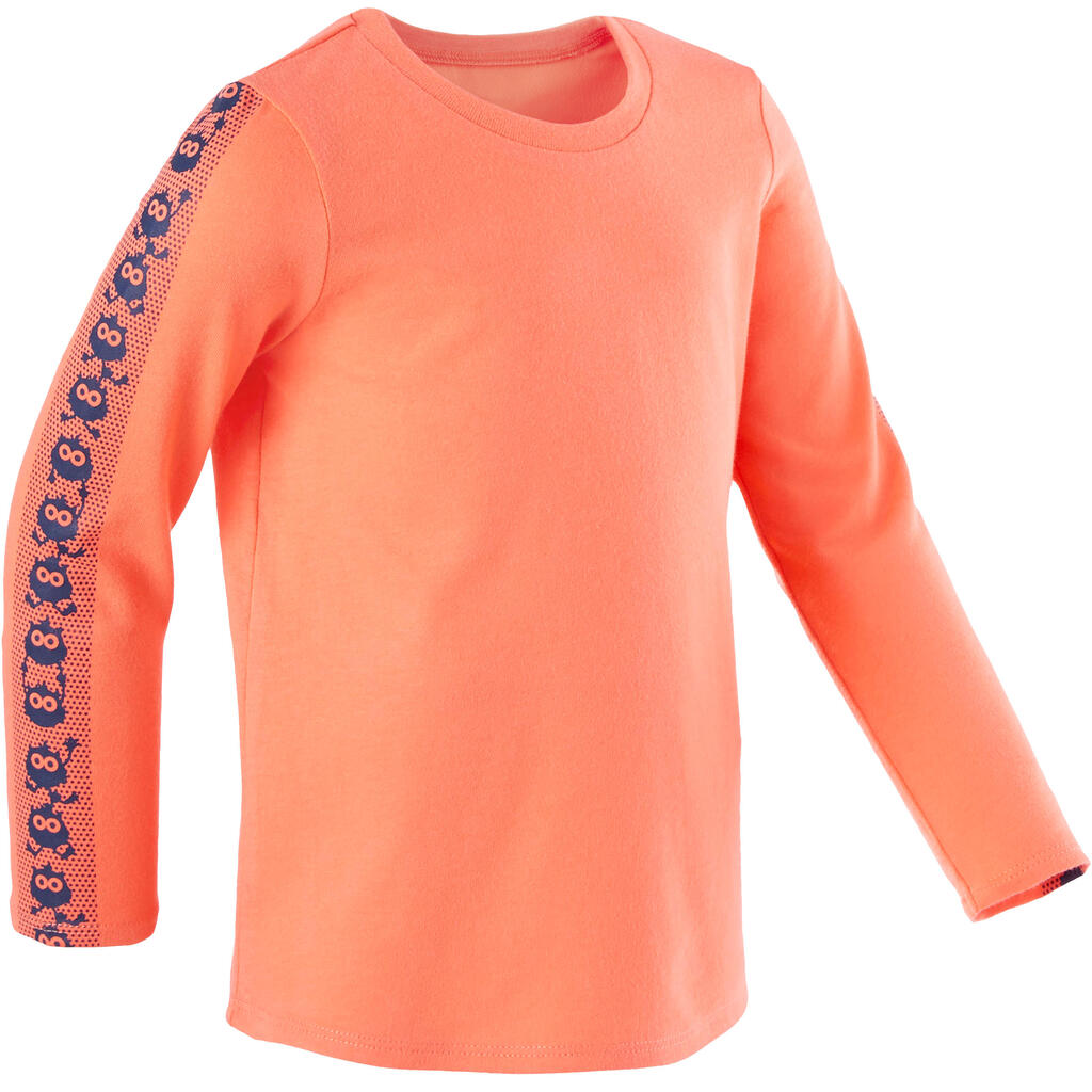Kids' basic long-sleeved cotton t-shirt - coral with motifs