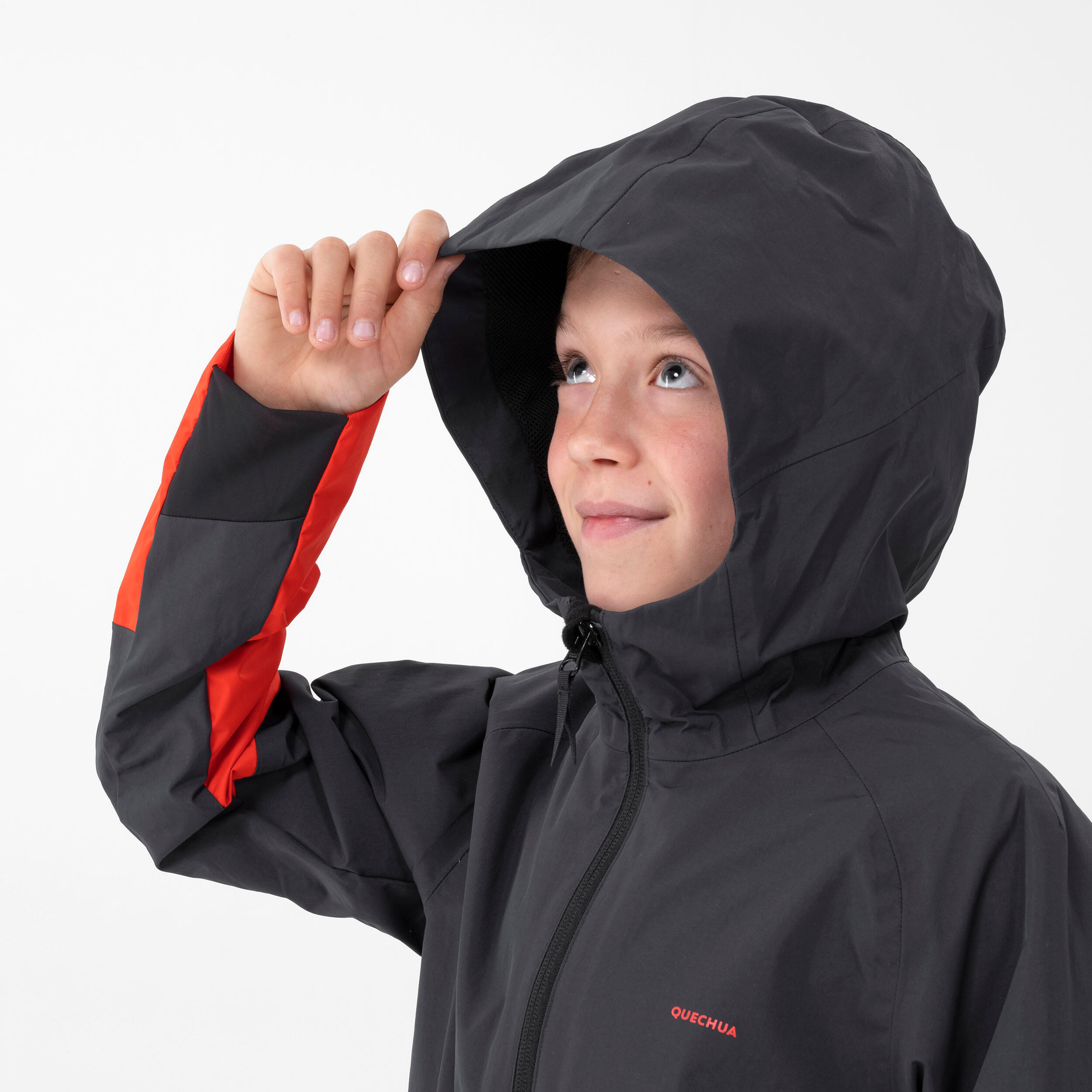 Kids’ waterproof hiking jacket - mh500 aged 7-15 - grey and red