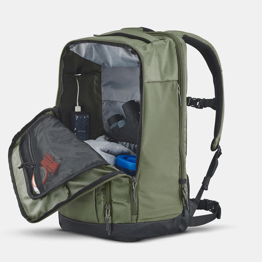 We also measured the volume with the 2 exterior side water bottle pockets, whereby its total capacity increases to 35L.