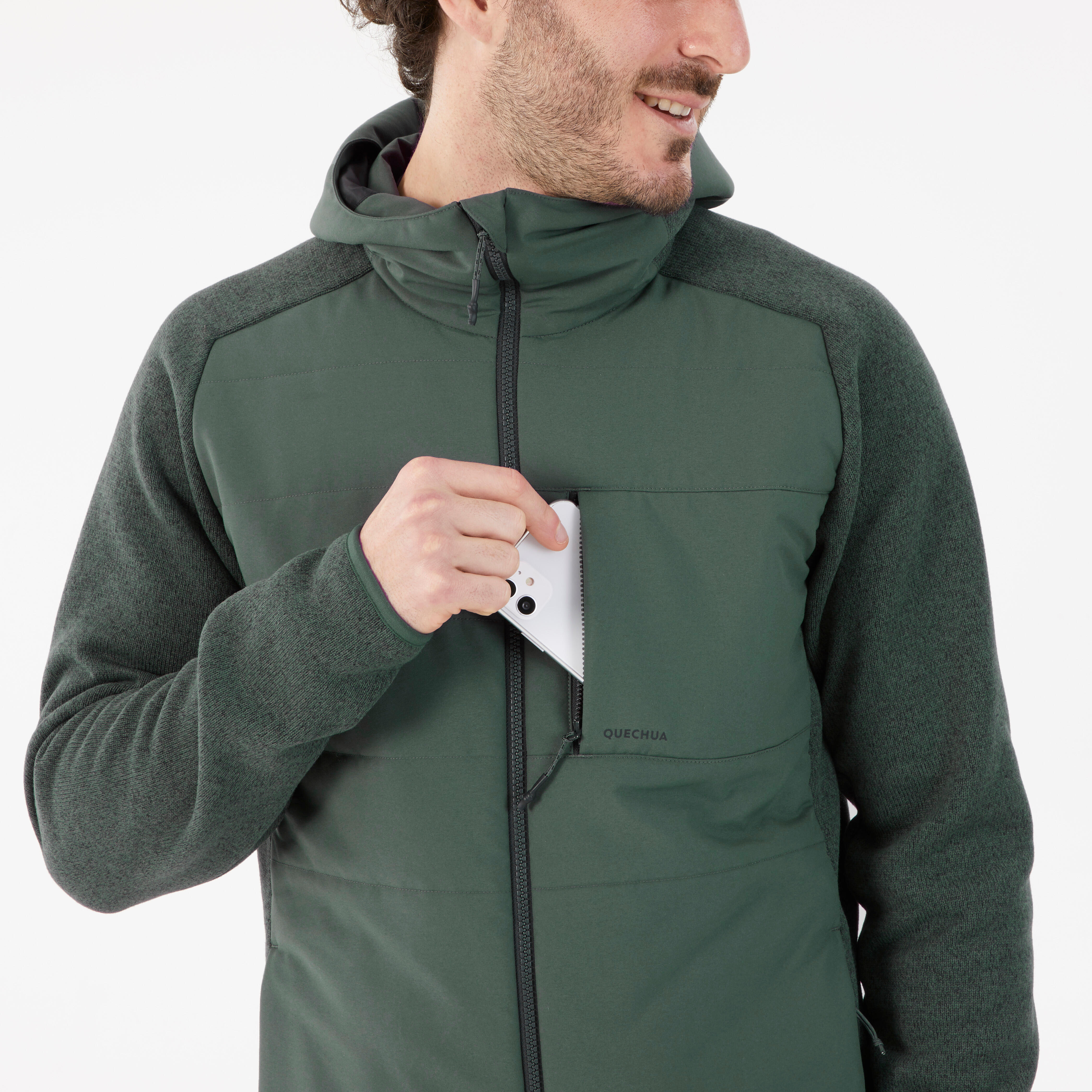 We conducted two thermal tests on this hooded sweatshirt. The first one on the component, the second one where we reproduce the temperature, wind (5 km/h) and damp conditions that you will encounter during your hike. These tests are used to validate our design choices and adjust the positioning of the thermal insulation to where you need it most. This sweatshirt has been tested to ensure optimal comfort when the outside temperature is between 7°C and 10°C.
