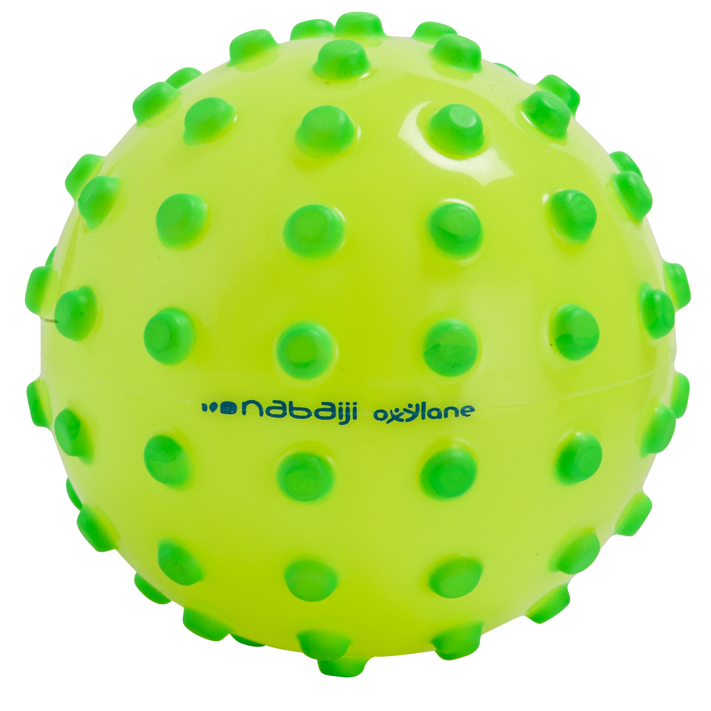 The ball, about 15 cm in diameter, allows young kids to play in the water as the ball is easier to handle. At last a ball that will not slip out of your hands.