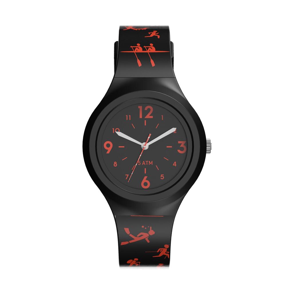 An essential accessory for all young athletes, this watch with interchangeable straps is the perfect companion for all activities, including water sports, thanks to its patented impermeability