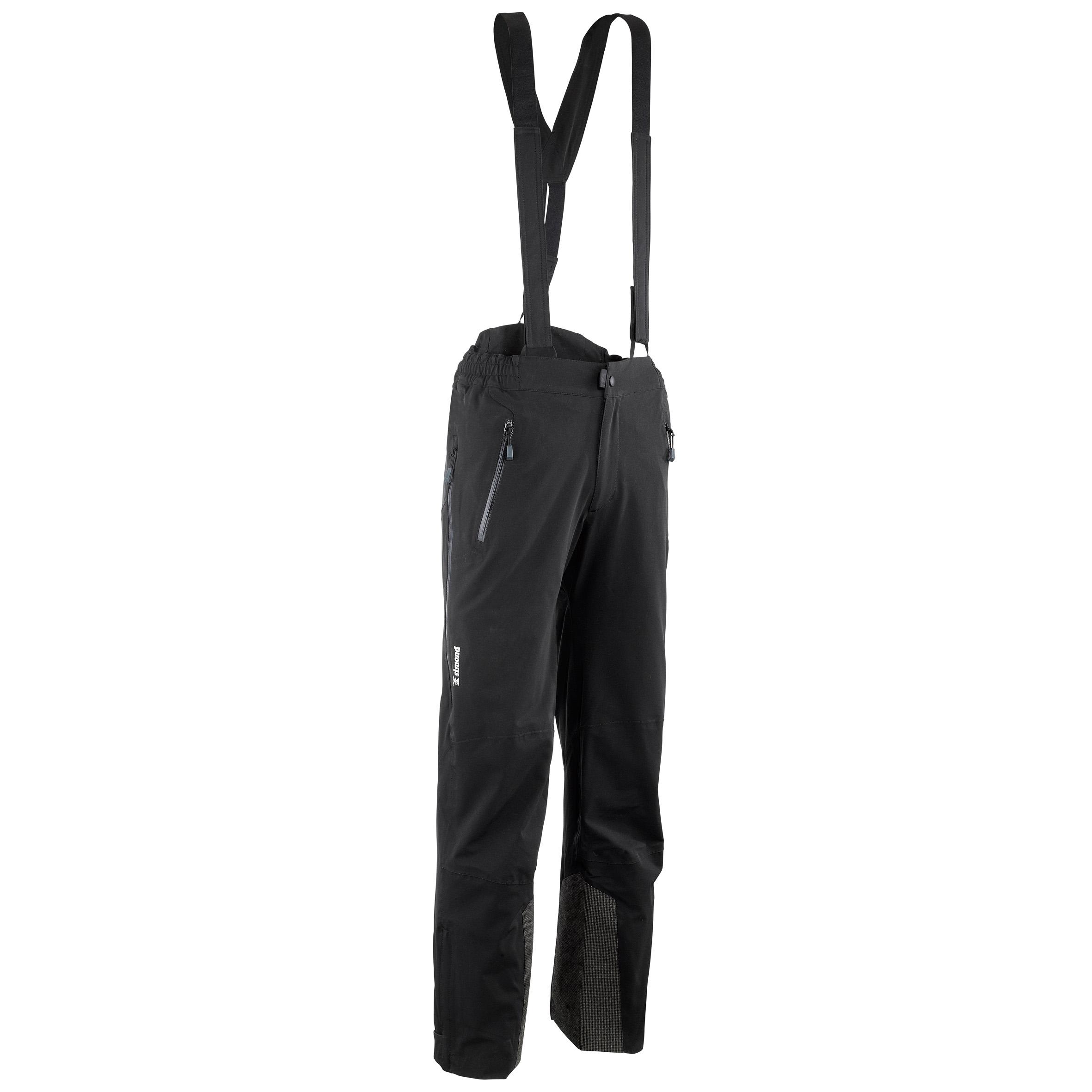 Waterproof and breathable pants, with adjustable and detachable braces, 2 taped side ventilation zips, built-in gaiters, lower leg zip, 2 zip pockets